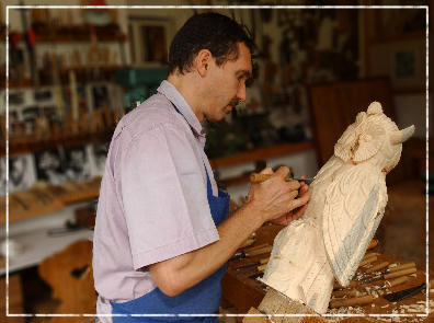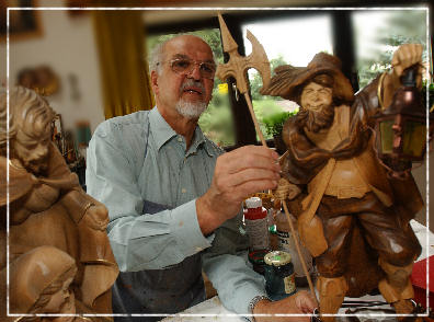 schnitzen Figuren aller Art. Kirchliche Themen wie Krippen und Heiligen-figuren